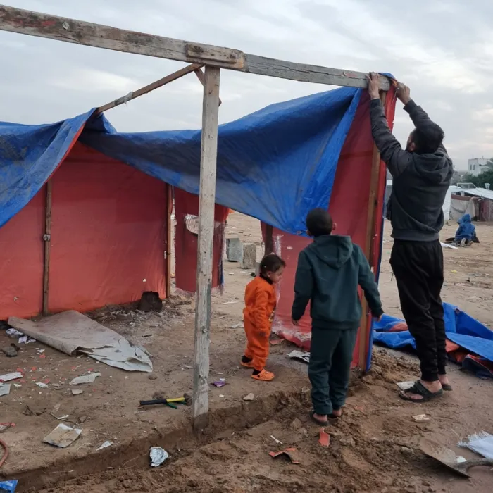 ”Vi frygter den kommende vinter, fordi vores telt ikke kan modstå regnen, og kulden dræber børn før sygdom gør”, fortæller Abu. Sidste vinter befandt familien sig i et telt i Khan Younis, hvor hans lille datter, Hiba blev syg af kulden. ”Teltet kollapsede, og vi havde intet tæppe til at varme min datter”.