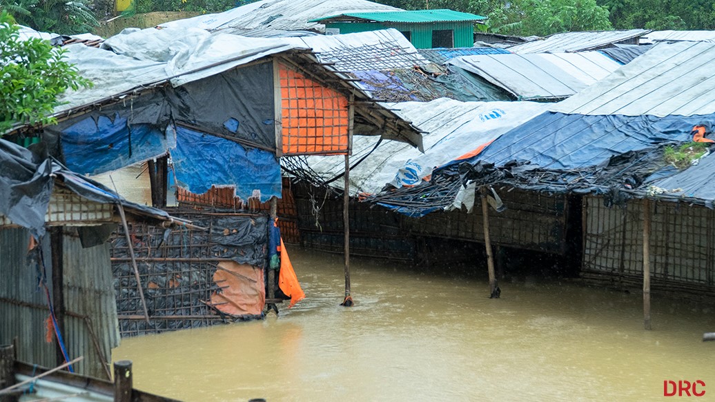 DRC has for several years helped secure the camp's paths and slopes against monsoon damage, and we distribute bamboo, tarpaulins and sandbags to reinforce and protect the residents' homes.