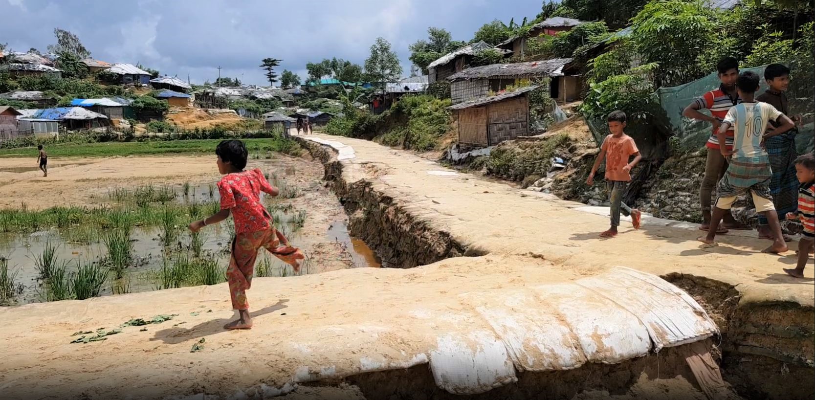 Another devastating element is the dreaded monsoon, which hits the area every year with relentless rain for up to three months at a time. The camp's flimsy bamboo shelters are not allowed to be replaced with anything more permanent, and thus more robust, and as a result, many thousands of people lose their homes each year to the monsoon waters, which cause deadly mudslides and flooding.