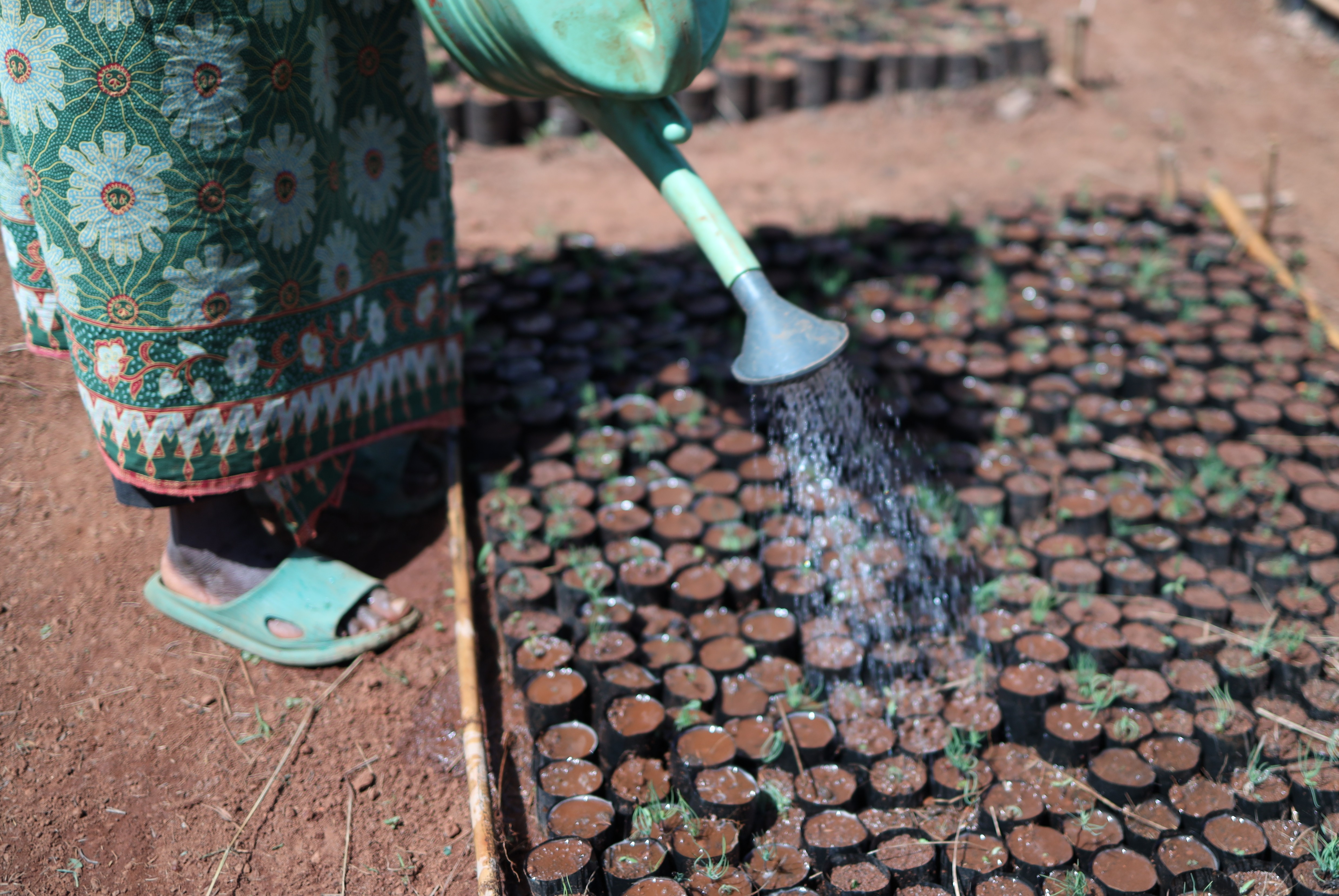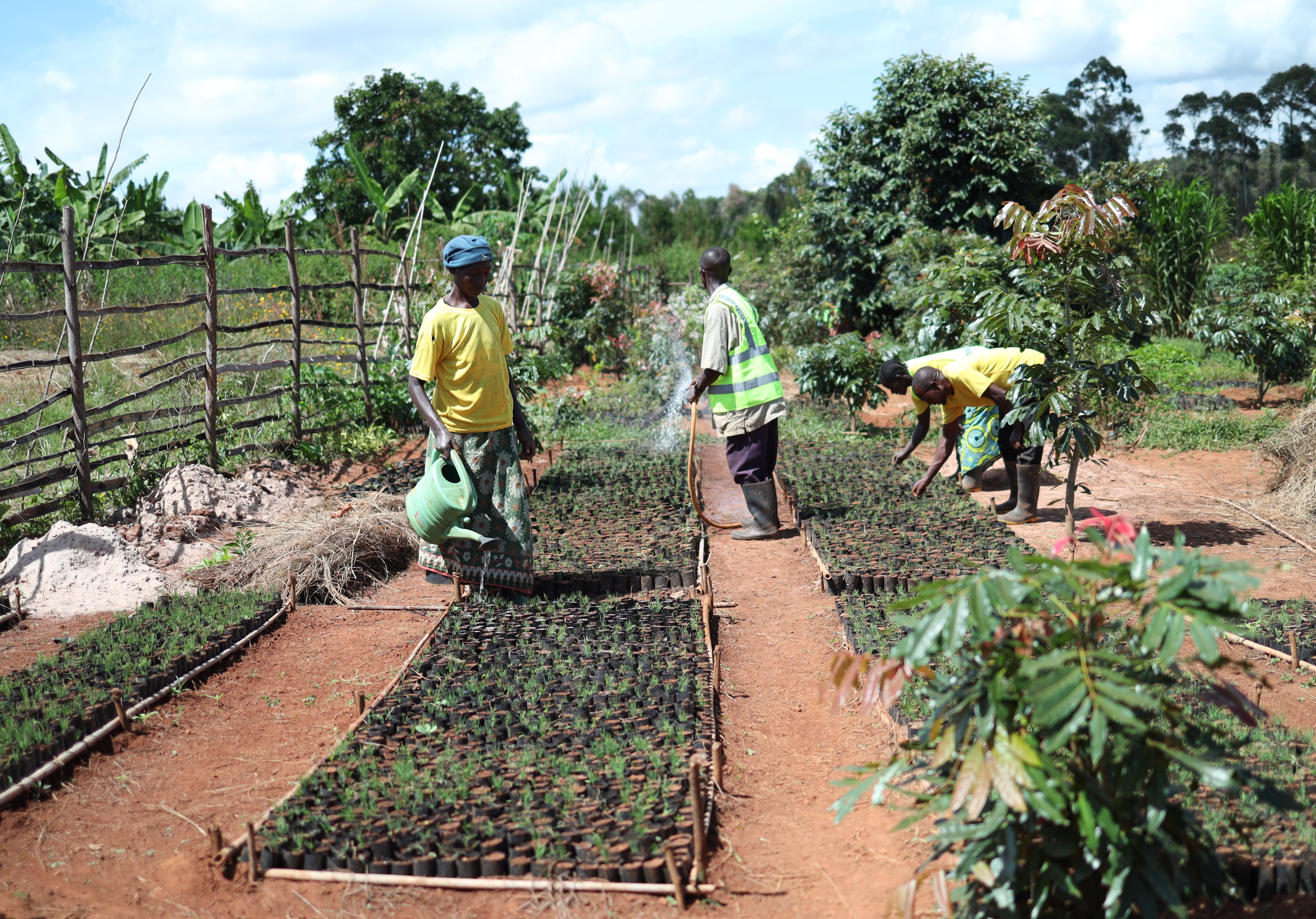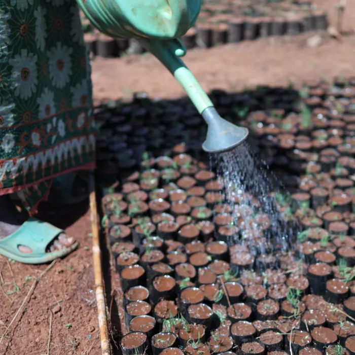 Along the ridge of a small mountain in the Kigoma region, you'll find one of our sustainable nurseries. Here, women and men from the local community meet weekly to be trained in sustainable planting.